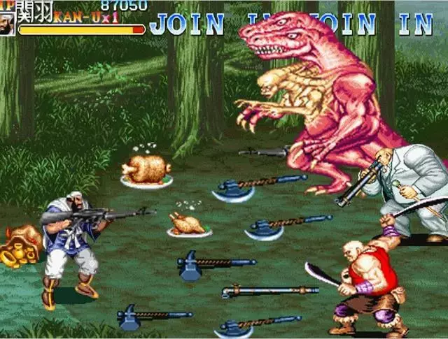 当年我们在游戏厅玩到的清版街机游戏,大部分都是有武器设定的。玩家只要捡到武器就会改变攻击方式,而攻击的强弱则是和武器直接挂钩。