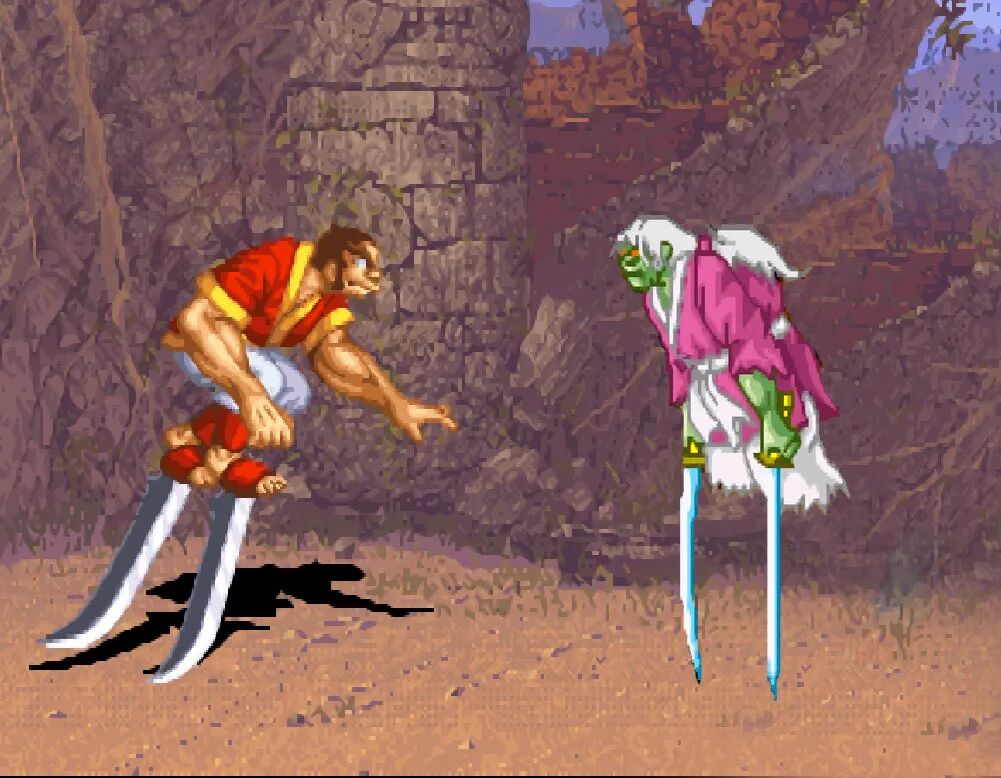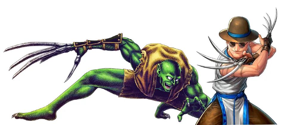在《侍魂》初代中,SNK成功设计了一个使用爪子的经典角色“不知火幻庵”,虽然对《街头霸王2》中的巴洛克有一定的借鉴,但是很明显这个人物无论是在造型还是动作都和巴洛克没有什么关系,因此可以看成是一个完全原创的人物。