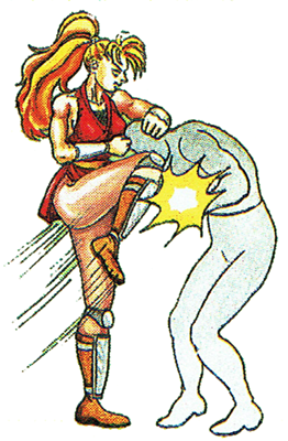 游戏厅那会不少玩家就是靠她跳起来扔扇子这一招,将最终BOSS给活活赖死的。