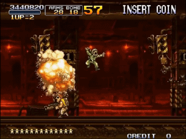 2关BOSS可以直接卡死,当然这针对合金弹头2