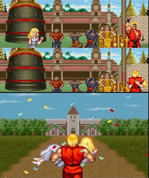 就像是游戏的结局,SFC版本在街机的基础上,增加了额外的画面。玩家要是没有玩过主机的话,或许永远也看不到这些画面吧!