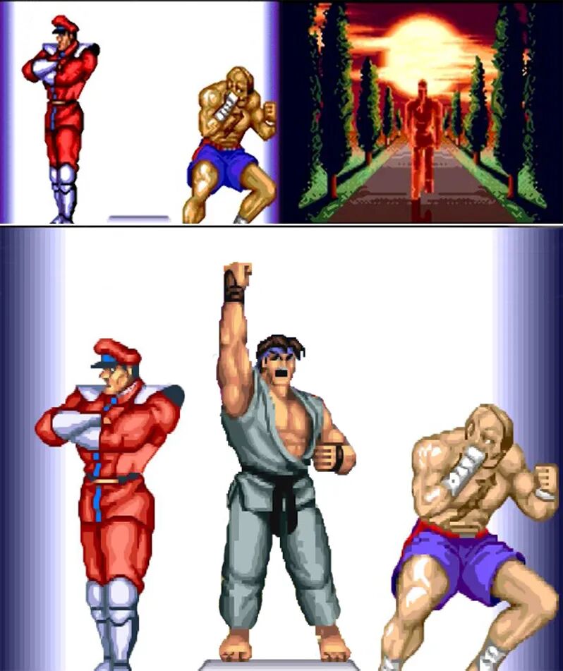 在MD和SFC中《街头霸王》最后四位BOSS的难度相对要低一点,可能是游戏厅被老板调成了最高难度的原因吧!只需要使用游戏厅那会儿练出来的耍赖招式,一样可以通关。