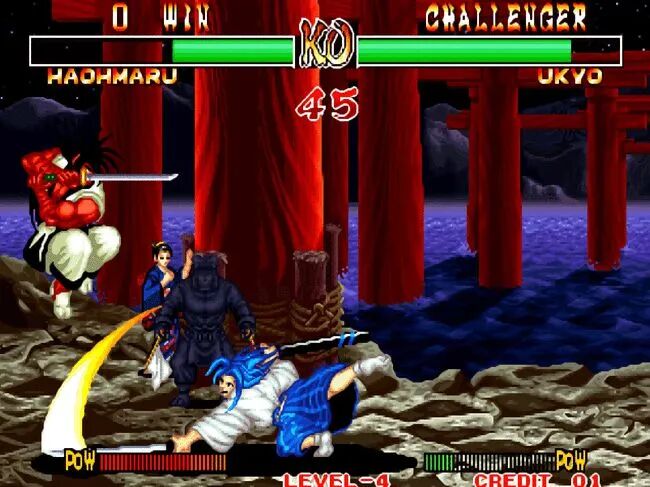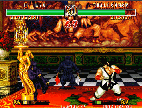 但小编一直不知道,原来《侍魂1》中就已经有这个设定了。虽然当年在游戏厅时期错过了这款游戏,但后来在模拟器上面还是玩了很久,真心没想到还有架招这个设定。不看到杂志介绍,估计又错过了。