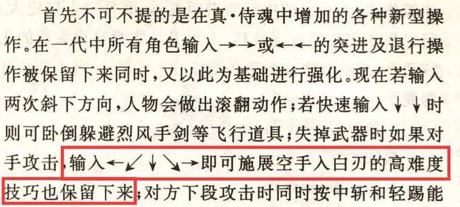 在文中我看到了这一段,感觉非常惊讶。原来“空手夺白刃”一直都是《侍魂》的常规操作。