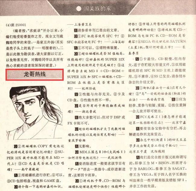 当年《电子游戏软件》有一个“龙哥热线”的栏目,可是非常的火爆啊!