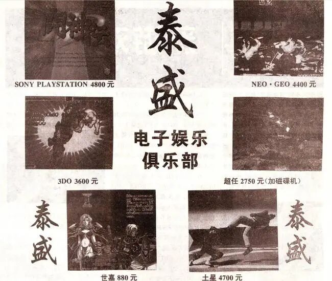 PS4800元、NEOGEO4400元、3DO3600元、SFC2750元、SS4700元、MD880。要知道那时候很多家庭一年都赚不到5000块啊!