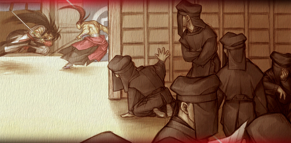 气得牙神幻十郎当场暴走,结果被一招打晕。天草发现和仲已经注意到了他的法阵,于是马上溜走了,临走之前还劝霸王丸考虑一下。