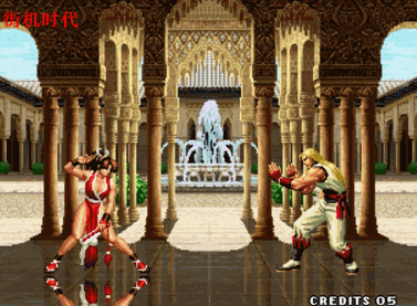 初出茅庐的不知火舞,虽然是卖肉的女忍者,但以如今的眼光看来还是比较保守的。而且姿势和后来在《拳皇》中的造型完全不同。