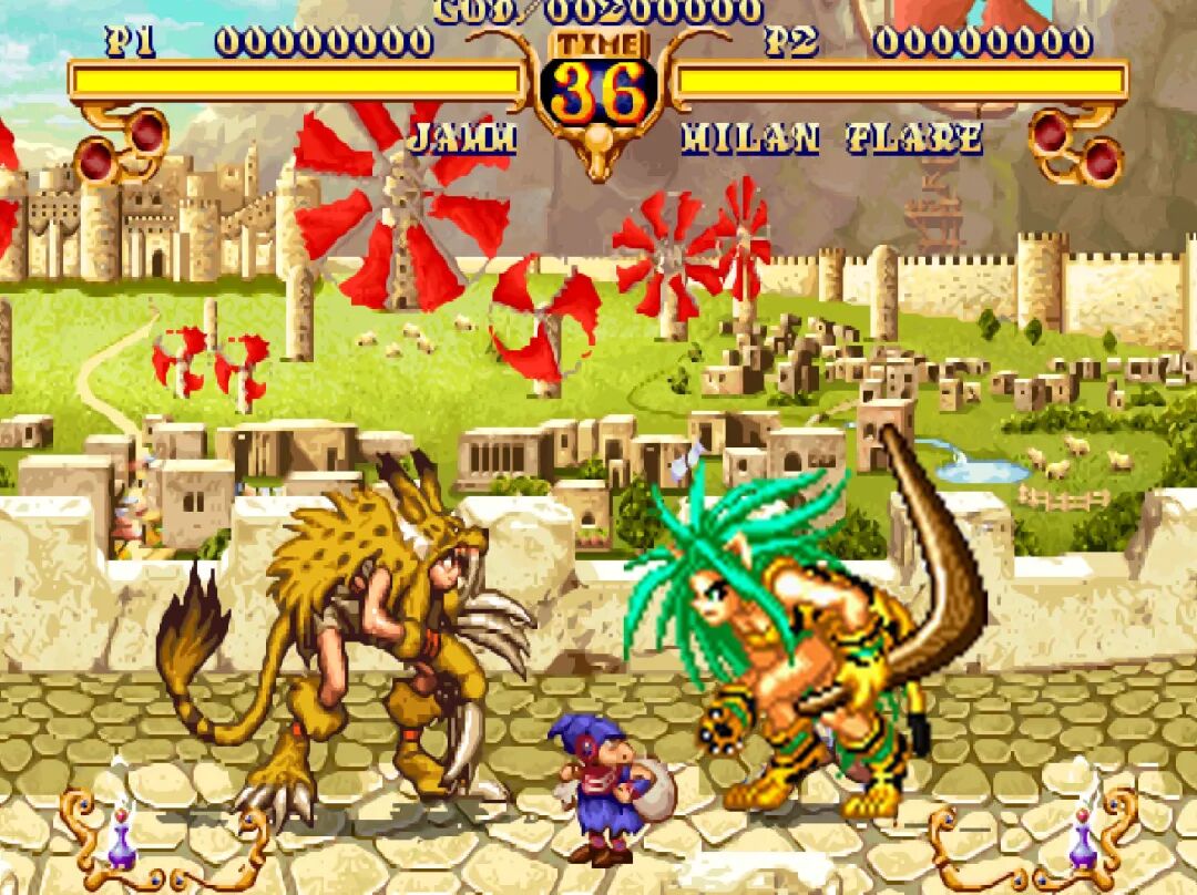 街机游戏中和“兽”有关的人物,发型基本上都是这样的。很有可能是以布兰卡为原型吧!在《恐龙快打》中就曾经出现了那么一只“青狼”。造型和上面的几位格斗家有几分相似。