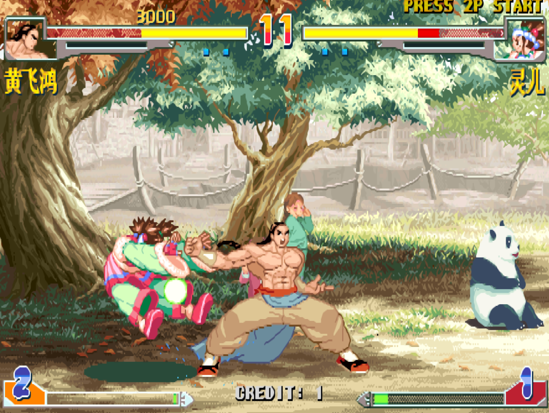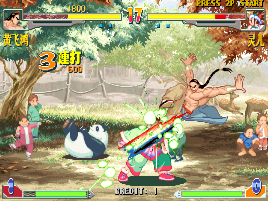 很大程度还原了黄飞鸿的功夫,只是这款游戏中出现的角色比较厉害,而且黄飞鸿也不是第一主角,因此无法像电影中一样勇猛。