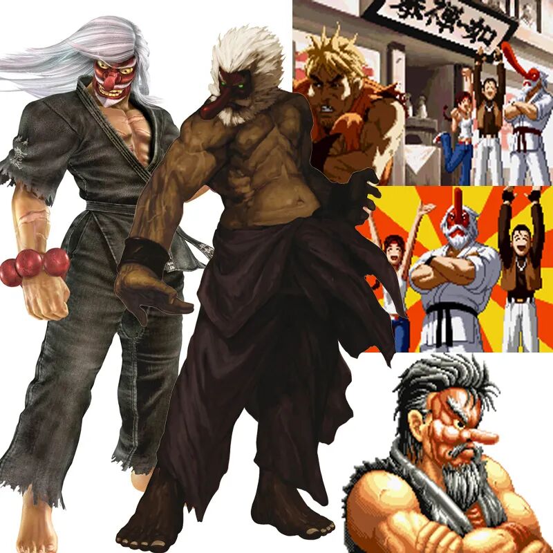 天狗、空手道先生,其实就是坂崎琢磨。在游戏中所表现出来的气场远远超越了MR.BIG。成为SNK后期比较有代表性的BOSS之一,在很多的乱斗类游戏中都有出场。在《SVC》中对应的人物是真豪鬼,其影响力可见一斑。