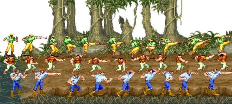 下图中是三位角色的攻击套路,你仔细看看麦斯最初的设计,是不是多了一个动作?就是最后一帧,感觉是不是打到自己了?这一帧最终还是被取消了,的确没存在的意义。
