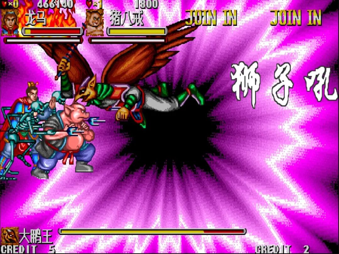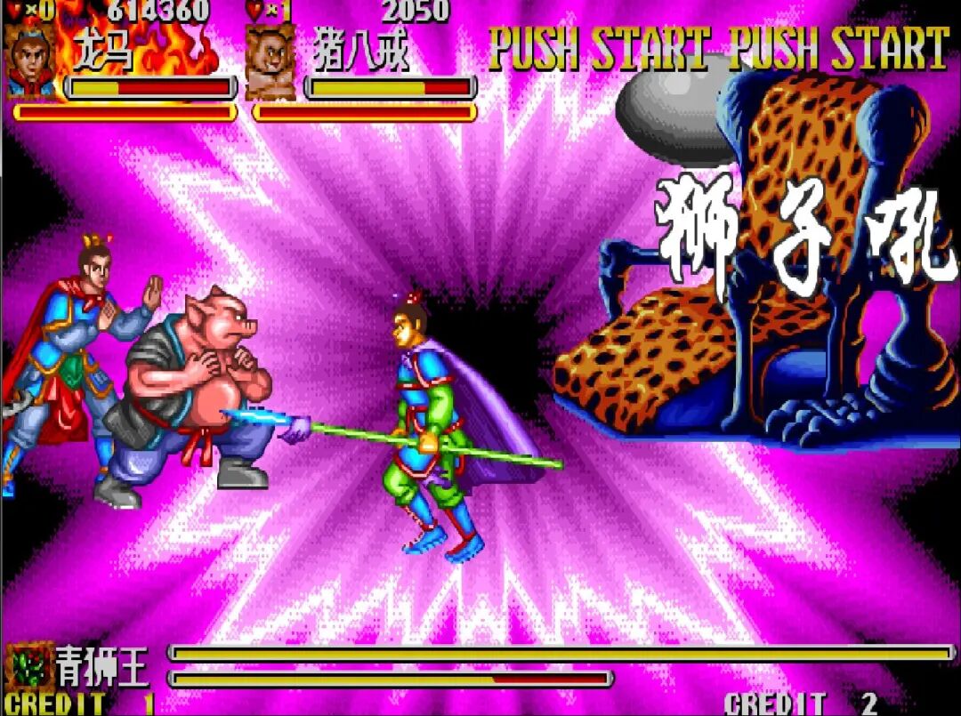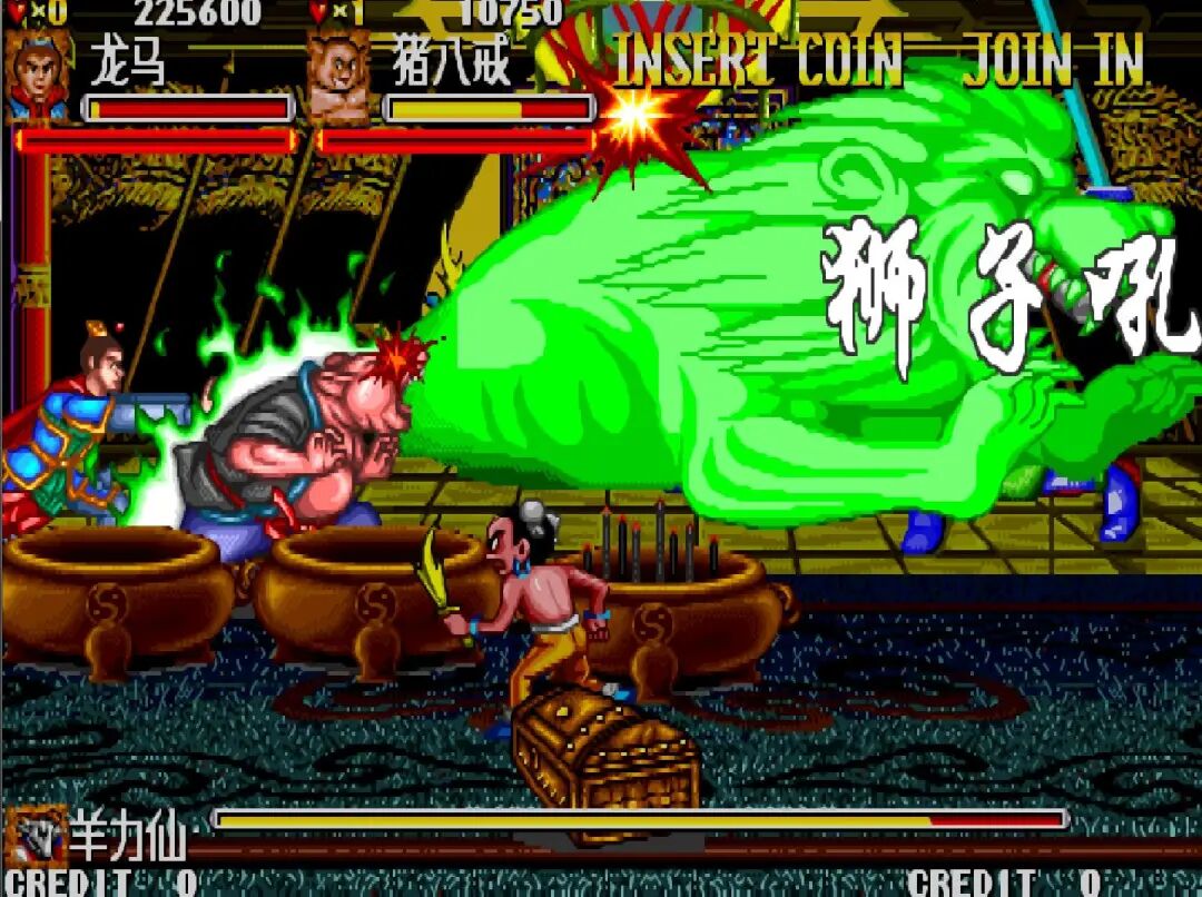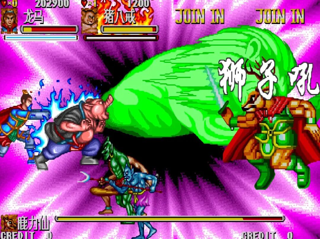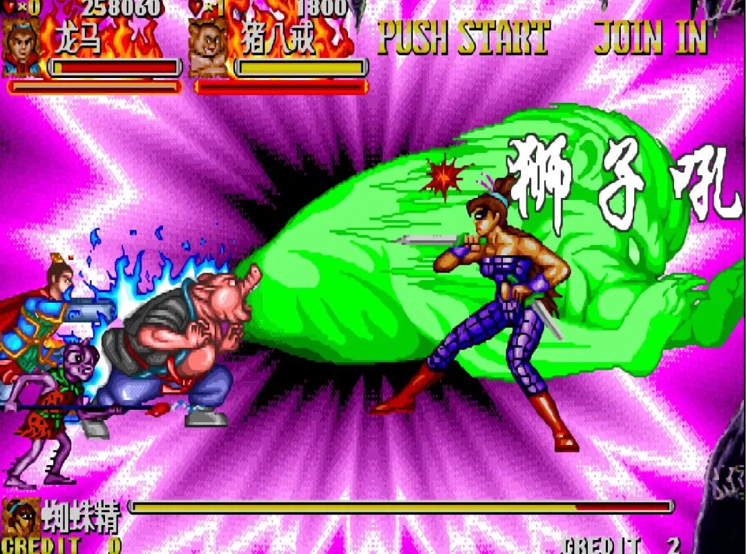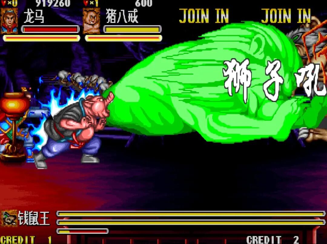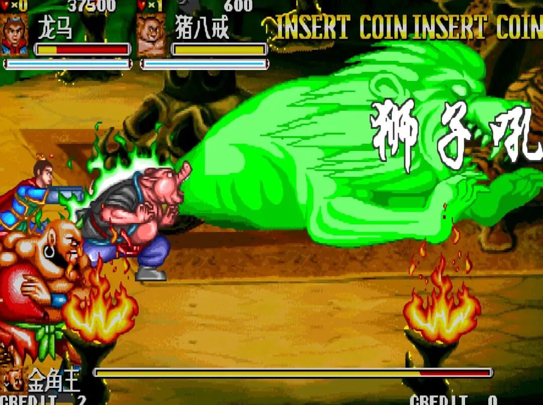 当年我们第一次接触到《西游释厄传》中龙马和猪八戒的合体必杀时就觉得非常熟悉,只见龙马将全身功力倾输于猪八戒体内,促使猪八戒使出了全场最强的合体必杀:狮子吼。刚开始接触这款游戏的时候,很多玩家打不出超必杀,只能用合体必杀来攻击BOSS。不过,那时候只知道使用合体必杀可以打出一定的伤害,就是不知道到底谁和谁的组合才是当前场景最实用的。