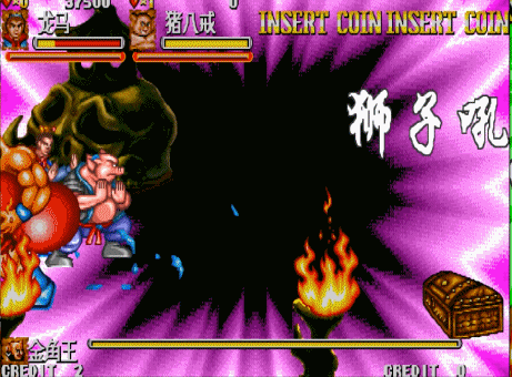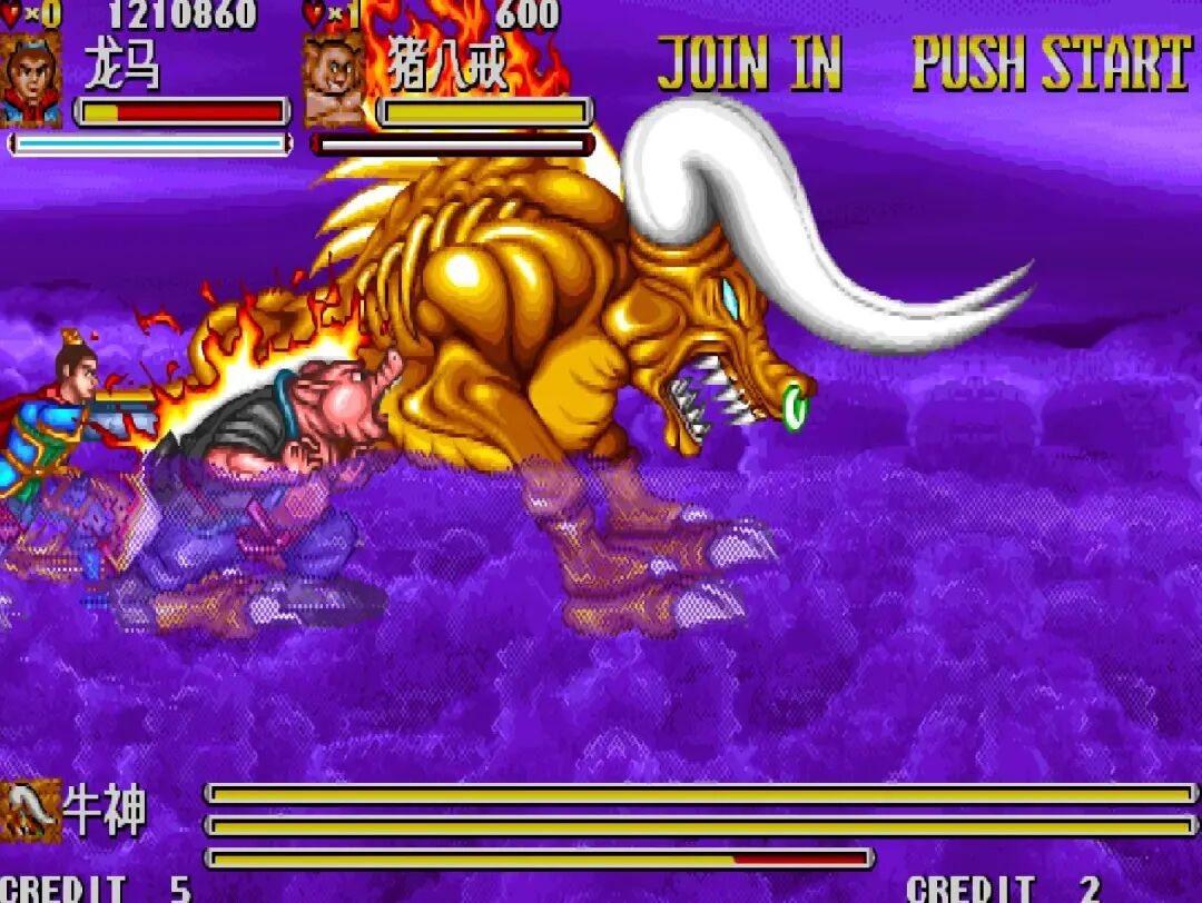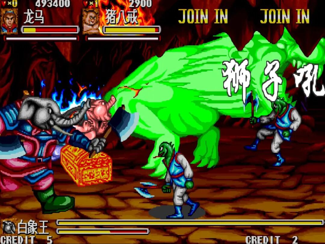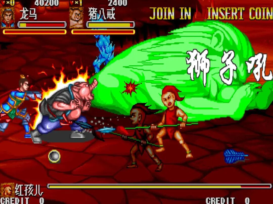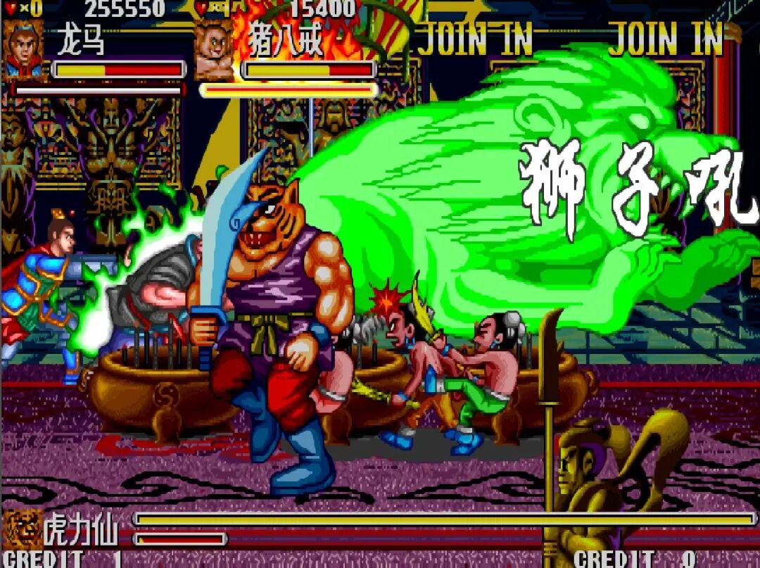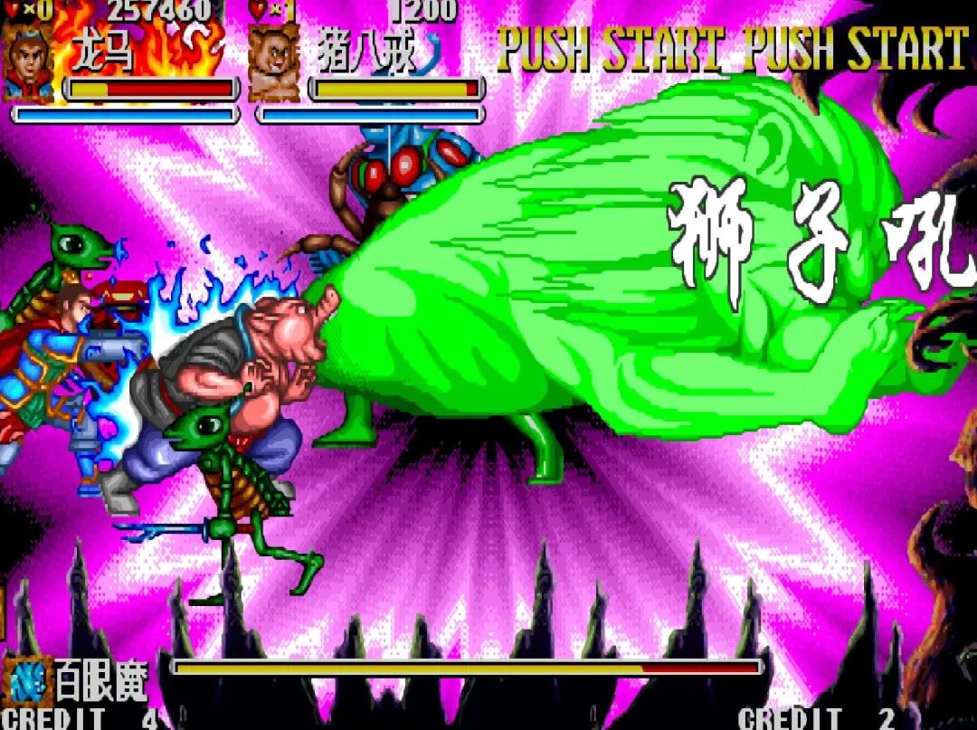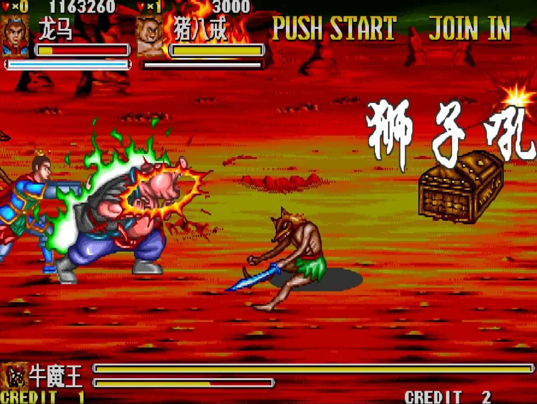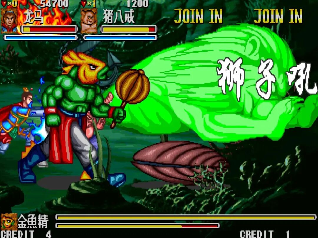 当年我们第一次接触到《西游释厄传》中龙马和猪八戒的合体必杀时就觉得非常熟悉,只见龙马将全身功力倾输于猪八戒体内,促使猪八戒使出了全场最强的合体必杀:狮子吼。刚开始接触这款游戏的时候,很多玩家打不出超必杀,只能用合体必杀来攻击BOSS。不过,那时候只知道使用合体必杀可以打出一定的伤害,就是不知道到底谁和谁的组合才是当前场景最实用的。