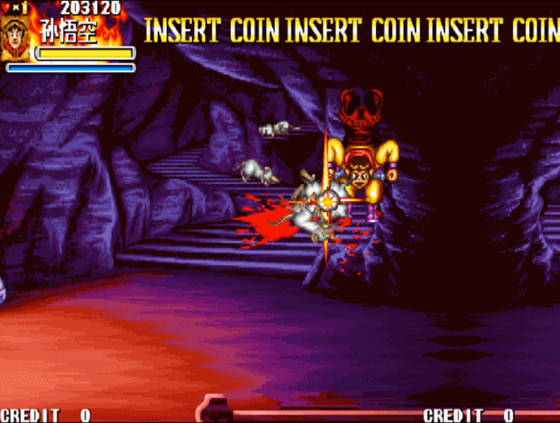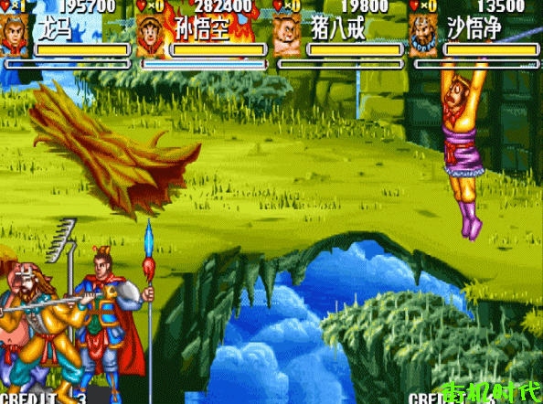 龙马先登场打过一关,拿到最高的分,然后使用突木桩快速清兵去偷分的位置。孙悟空投币下来开始偷分,时间要到了的时候,龙马和孙悟空同归于尽。然后继续偷分,时间要到了的时候猪八戒下来,然后时间再次要到的时候最后一名角色下来,这样的话就可以得到最高的分数。