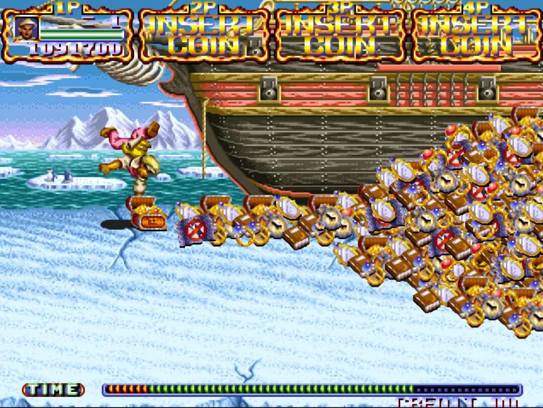 《快打旋风3》可以通过鞭尸BOSS无限获取生命,只要你不走,甚至可以从老板开门一直刷到关门,反正刷BOSS全都是慢动作。而《特殊部队》的奖命是一次性的,直接给你一个隐藏的7UP。相当于是连续投了几枚币啊!吃到之后稳扎稳打基本上就能通关了。