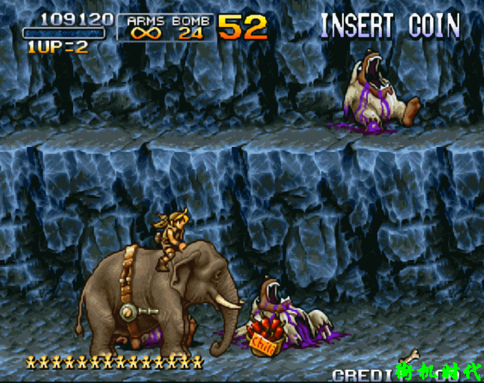 在整个系列中大象只出现了一次,是在《合金弹头3》的雪怪洞穴之中。