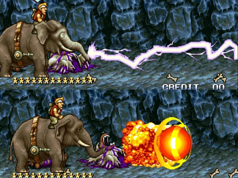 《合金弹头3》中出现的大象炸弹,拥有两种不同的炸弹。就看大象在途中吃到的是电池还是辣椒。吃到电池就能打出电击效果,而吃到辣椒就能打出火焰效果。