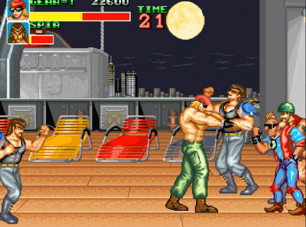 当年游戏厅出现过一款《流氓大混战》的硬派动作游戏。估计大家印象最深的就是一关那个拿木板砸人的胖子吧!
