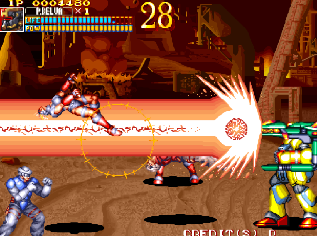 《电神魔傀》的机器人一直都是比较给力的,无论是在SFC还是街机平台都能打出无敌的效果。而到了《电神魔傀2》之后,它换掉了之前的装备,从而失去了无敌BUG,但也同时多增加了不少的能力。