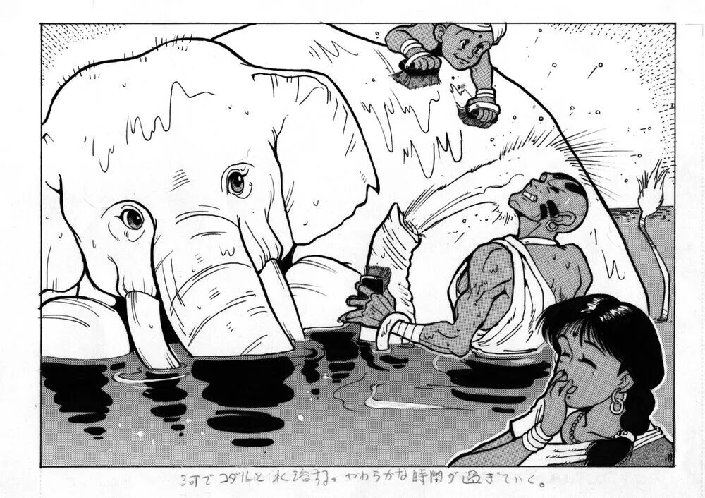 达尔锡姆的家庭成员有:儿子达达、妻子沙莉和一头大象。闲暇之余,三人总是会在一起给大象洗洗澡。