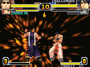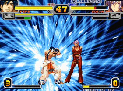 不过游戏中的超必杀还是非常不错的,指令简单和拳皇差不多,每个人物都有:超必杀、MAX超必杀和合体必杀。