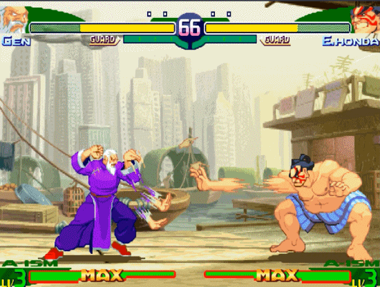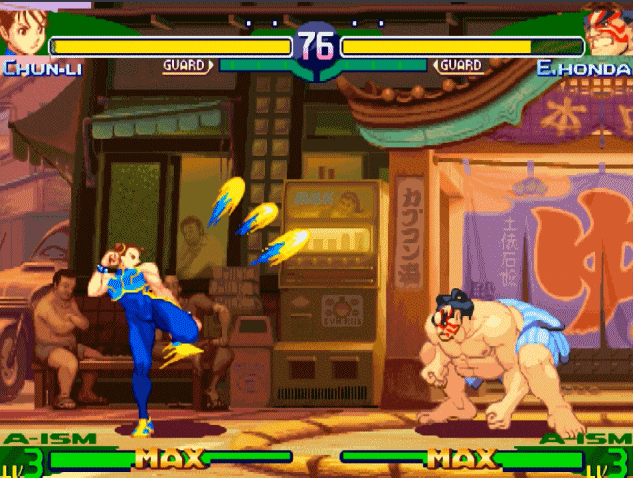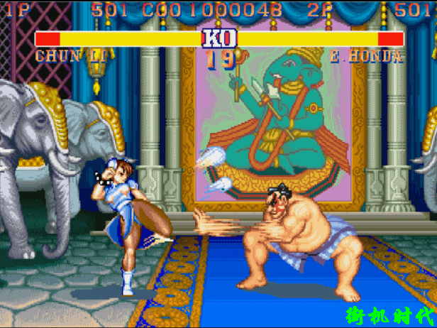 但如果是在《街头霸王2四大天王》中,本田就可以一移动,春丽同样无法移动。但是两人的招式只要一靠近,就是本田受伤,无论多少次都无法改变这个结果。