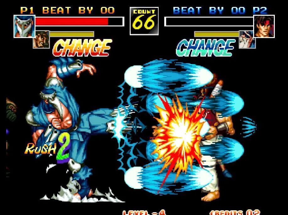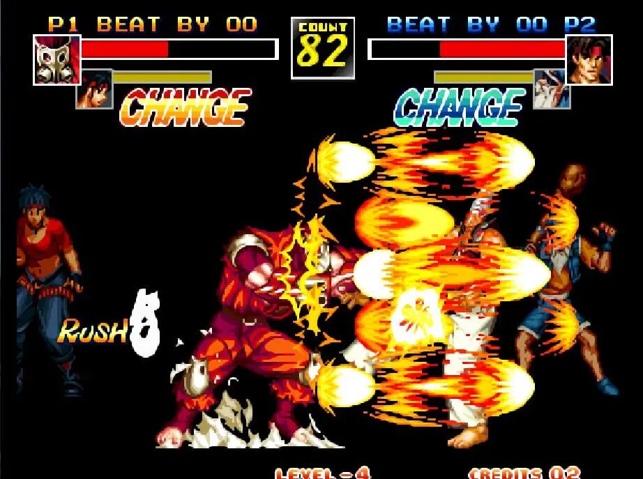 在街机游戏中,百裂是非常特殊的攻击方式,只需要使用连射按键就能释放,伤害高,而且可以持续。