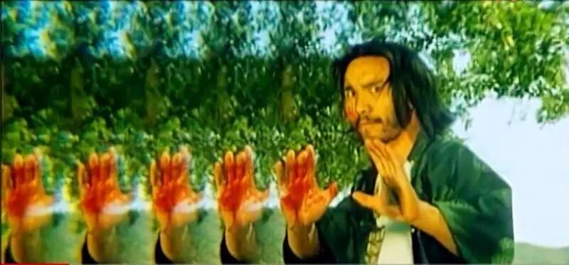 当时的黑沙掌通过“特效”打出了百裂的效果,虽然是坏蛋却成为我们模仿的对象。