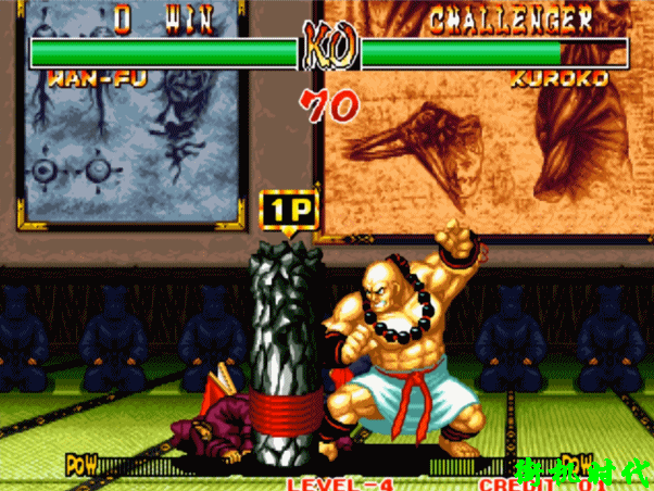 在侍魂系列中,黑子有好几个亲兄弟。他们在玩家获得完全胜利时就会全部走出来道贺。