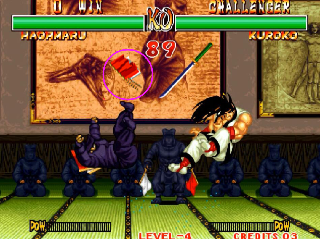 在《侍魂3》中就算是最终BOSS斩红郎的武器也能够被打下来,《侍魂》天草已经那么屌了武器还是会脱手。BOSS的武器被打掉只存在于“可选”的前提下,不过多多少少还是有些颜面扫地。