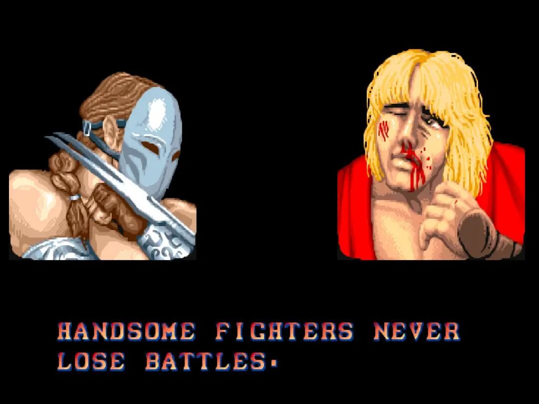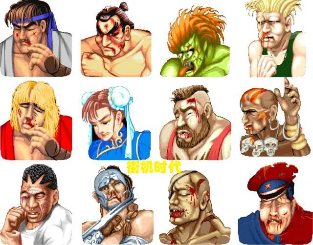 人物的战败画面也不知道是不是这款游戏开始的,所有人物在战败后都会失去主角光环,变得鼻青脸肿的倒霉样子。除了春丽以外,几乎所有的人物脸型都变了。