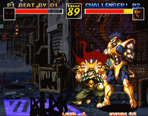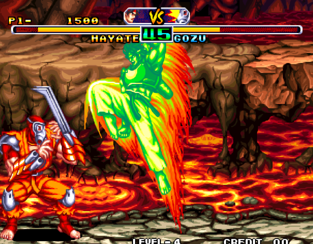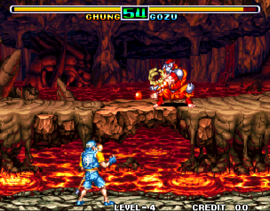 那时候初代的人气比较高,加入了类似《饿狼传说》的切换站位,让整个场面的画面感很强,并且在场景中布置一些陷阱用来对付别人。