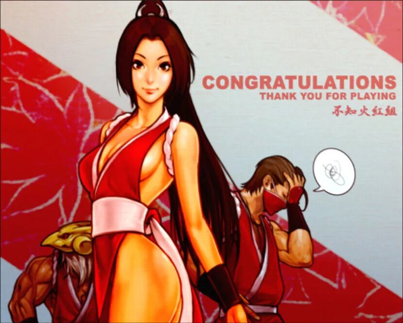 不知火舞、邪头和如月影二通关之后,三人的特殊结局触发。三人身份都是忍者,但不知火舞是队长,其他的两个人全都穿上了不知火流的红色道服。