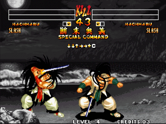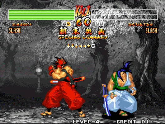 《真侍魂》中将对手杀死之后会砍成两截,然后黑子来收拾抬走;《侍魂4》不仅仅加入了一闪,还加入了花式虐尸的技能:断末奥义,这一招的出现大大提升《侍魂》系列的血腥程度;《侍魂闪》中加入了断臂和削首的残忍设定;《侍魂零》将断末奥义升级成为绝命奥义。