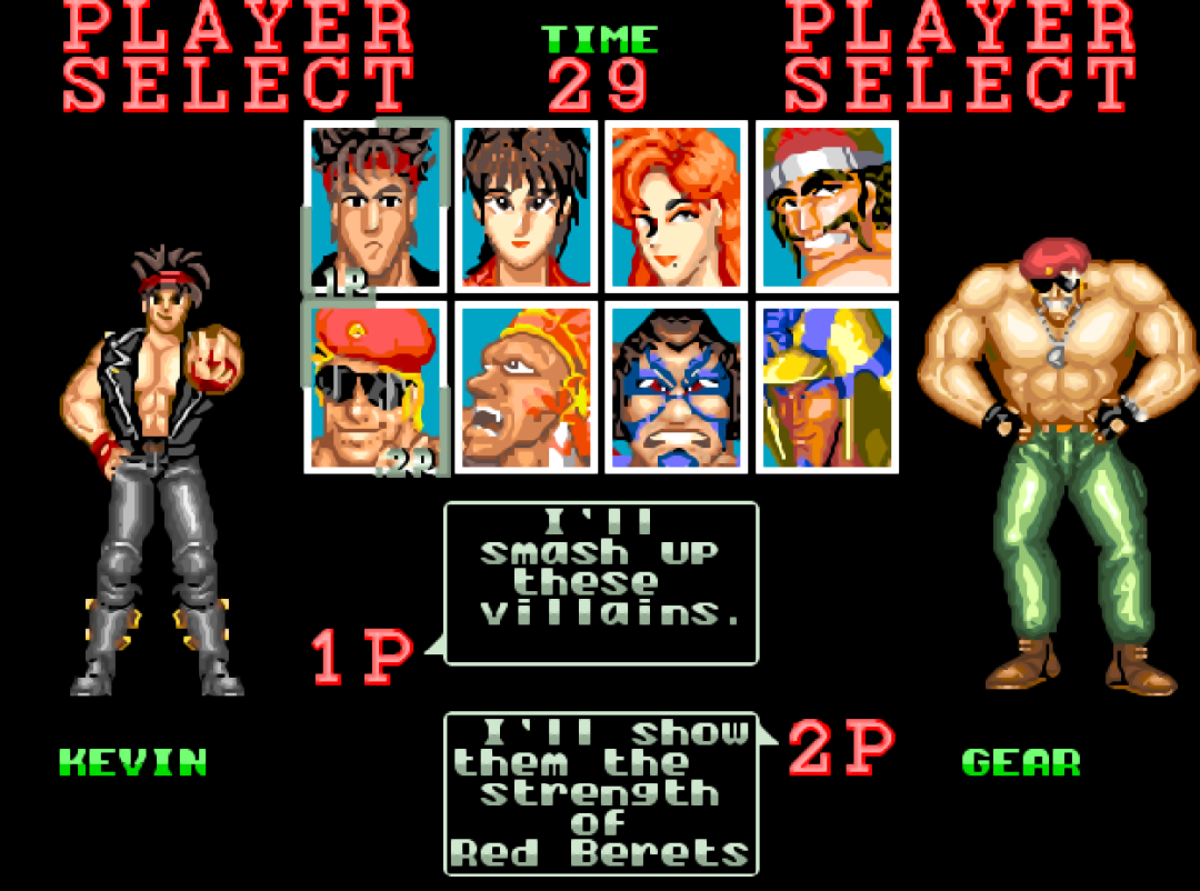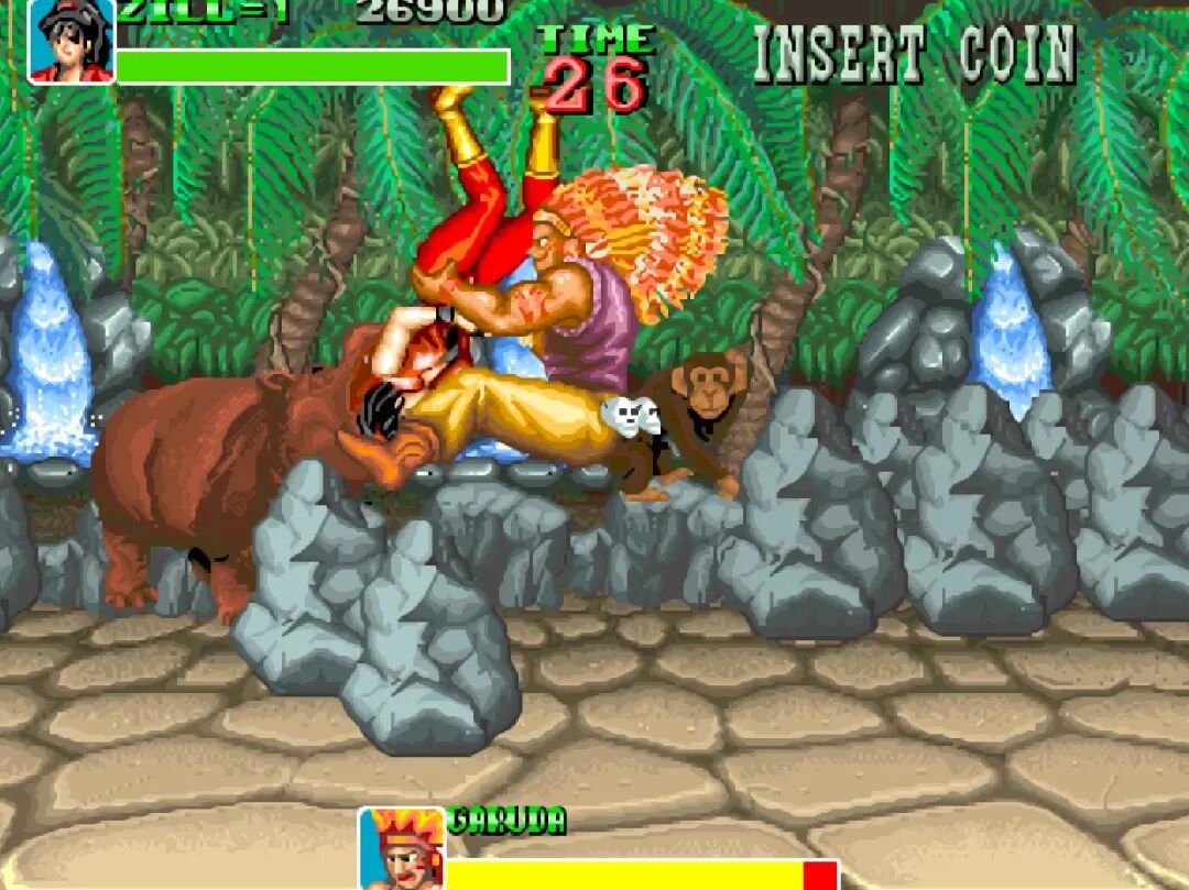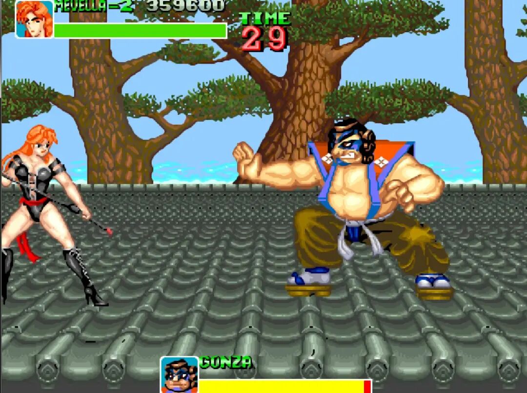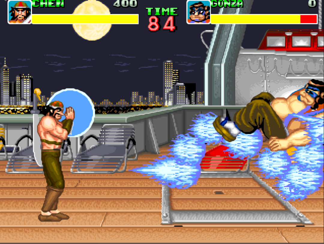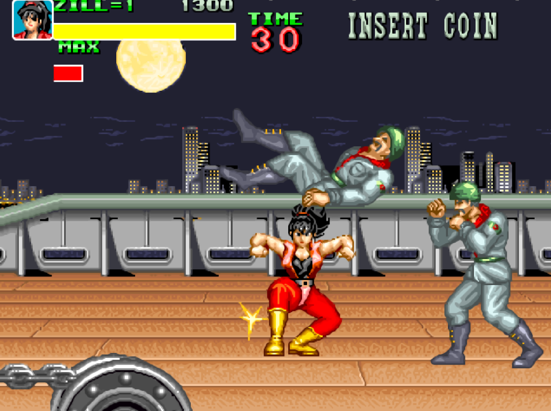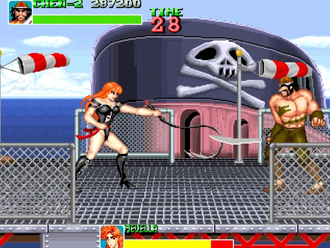 游戏有两种玩法,分别是清版过关和格斗模式,每个人物都有那么好几个技能,多年后的《三国战纪》应该就是参考了这个模式吧!