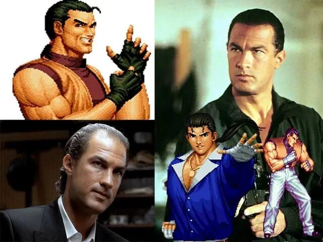 像是SNK的《拳皇》系列中,几乎所有的人物都是有原型的,不过大部分都是借鉴的都是日本的明星,我们熟悉的就有:森高千里的雅典娜、内田有纪的小雪、高山征辉的八神庵、竹村桐子的希尔薇......以及动漫作品,像是《北斗神拳》《JOJO奇妙冒险》《刃牙》《EVA》《假面骑士》等等等等。