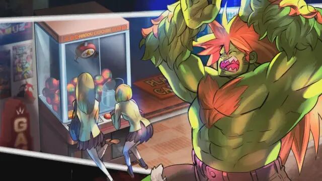 《街头霸王V》时期布兰卡为了帮家里赚钱,制作了大量的布娃娃,但是销量很差。最后在春日野樱的帮助下,通过娃娃机进行贩卖,结果获得了很好的效果。