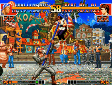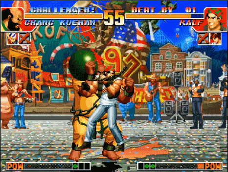 《拳皇》系列中曾经出现过不少拥有特殊投技的人物,拉尔夫和克拉克在早年的版本中非常强悍,指令投甚至比超必杀技还好用。