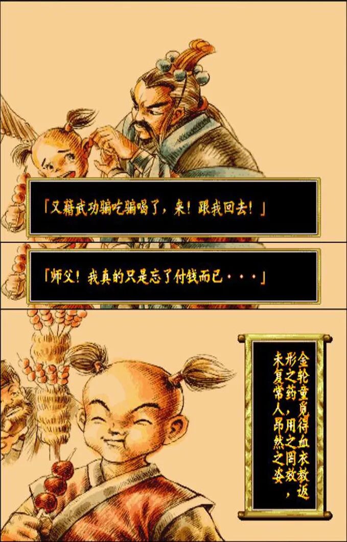 最后,金轮童子成功闯入了血衣教总部,而且还拿到了返形之药,但是吃下去之后没有效果。最后金轮童子不得不继续忍受着这具孩童的身躯。