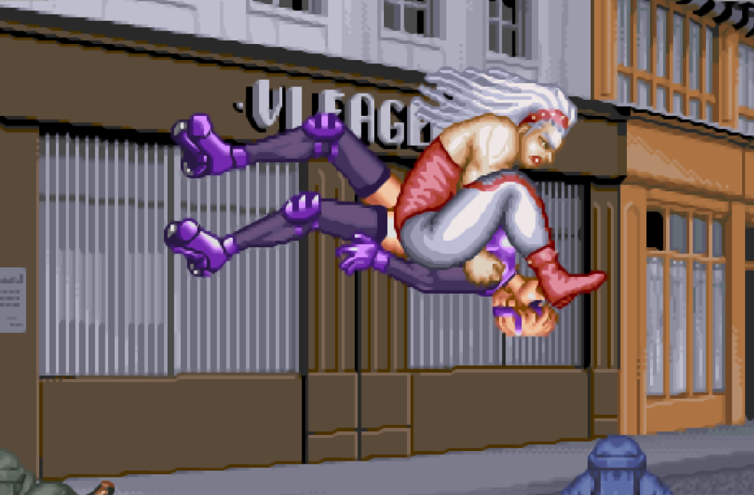 我想《豪血寺一族》安吉拉的臀部攻击应该可以上榜吧!在抓住对手之后,直接跳到天上去,然后一屁股坐下来,产生极高的伤害。