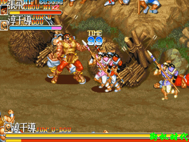 《三国志》中另一位比较弱的BOSS就是淳于导了。主要是场景限制了他的发挥。其实他不骑马的战斗力和徐晃非常接近,唯一的弱点就是没有起身无敌。那么刚好场景比较窄,而且有一个死角敌人过不来。(骑马之后会变迟钝)