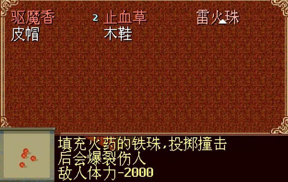 没钱没药没等级没技能的时候,BOSS却一个比一个还厉害,甚至连林月如都打不赢,而这个雷火珠可以造成2000的伤害。