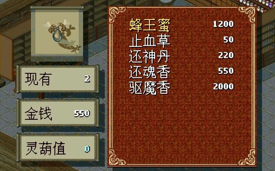 现在可以在洪大夫这里买药了。此时玩家手头还比较拮据,根本买不起。但是还神丹和还魂香这些东西都是必须买的。有条件的话还要多买点驱魔香。