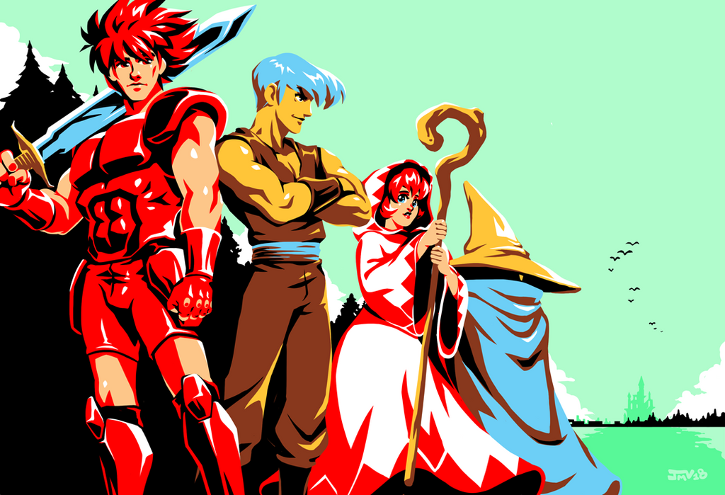 一只巨大的骷髅手上托着三位英雄,蛮荒之气扑面而来,一个剑与魔法的世界就此打开。