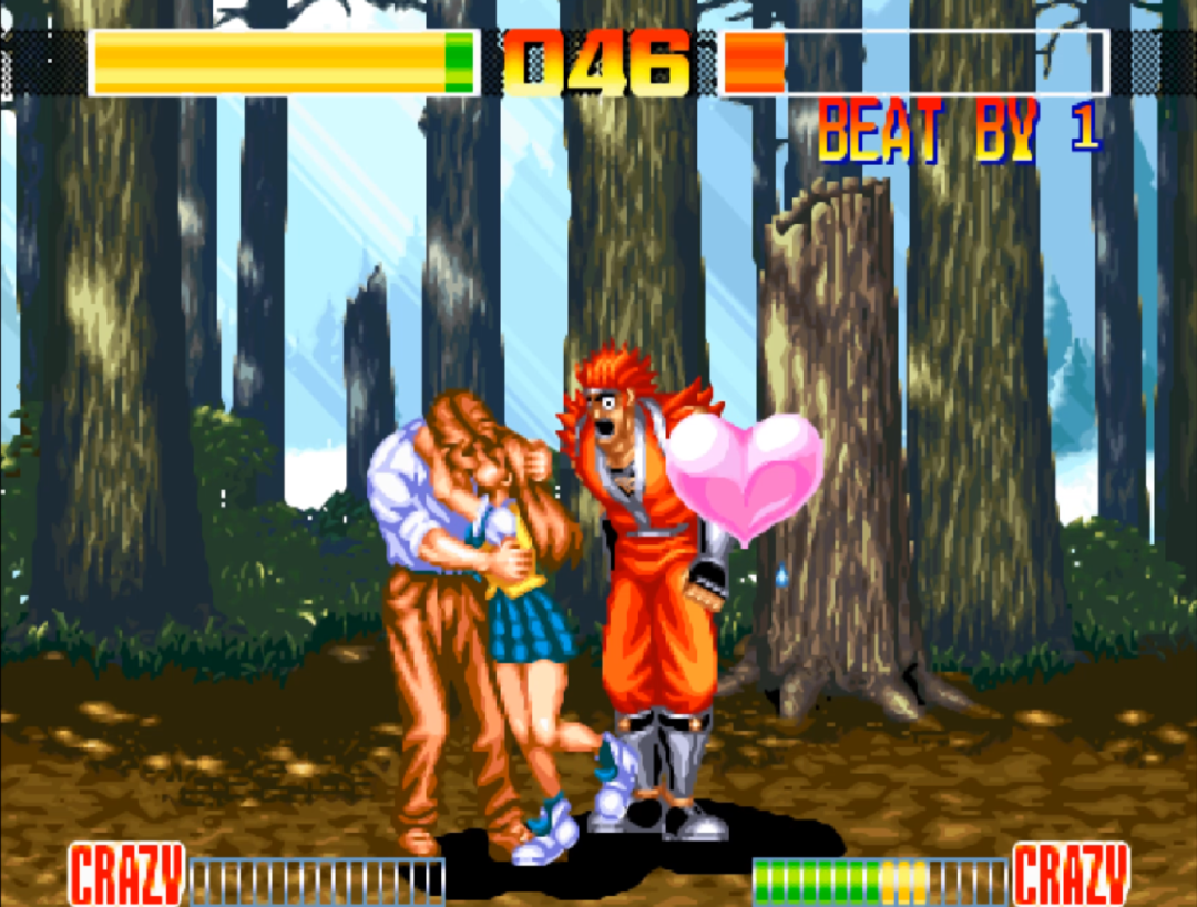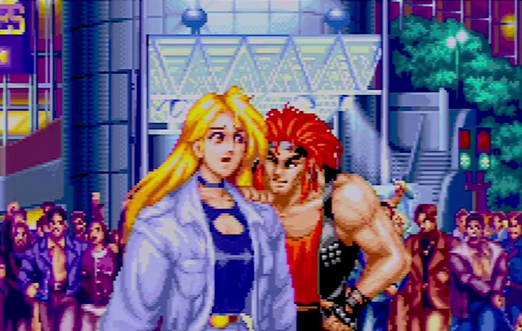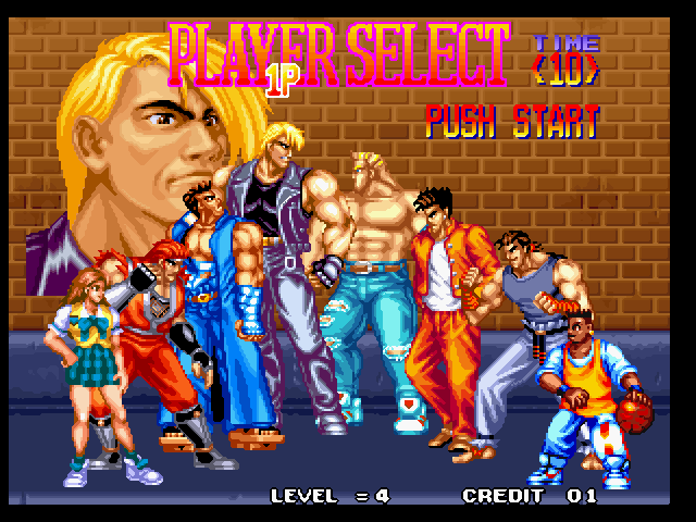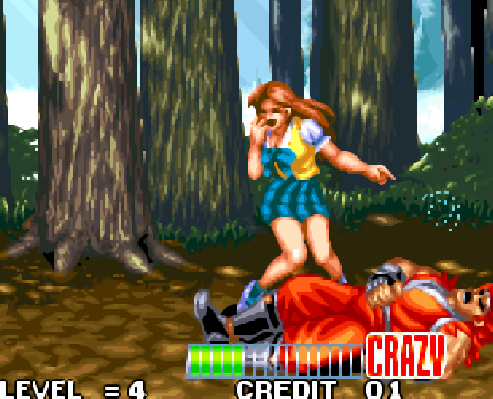 这款游戏的玩法相对比较特殊,虽然是格斗游戏但是场景却比较自由。其中还有武器可以使用,算是对早年的SNK游戏《街头快打》的一种致敬吧!