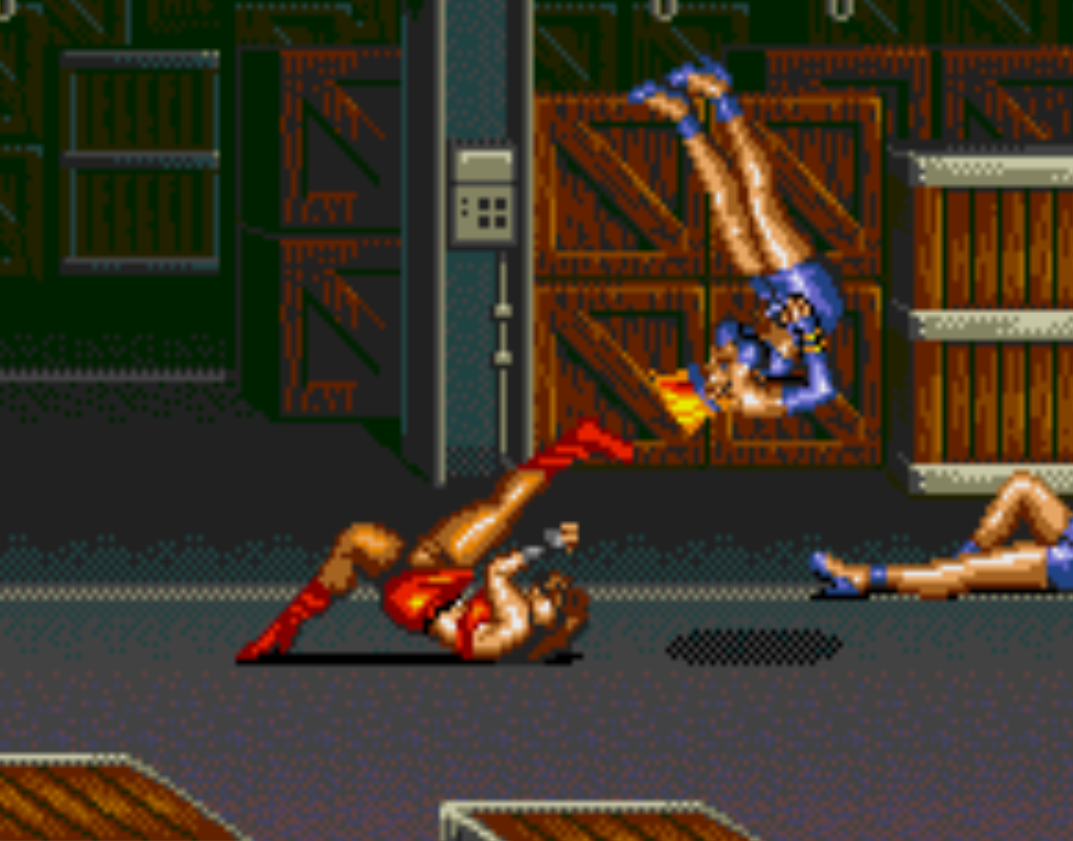 《快打旋风3》中的露西娅则比较擅长此招,抓住敌兵之后,直接一个弯腰就甩过来了,动作比较干脆。