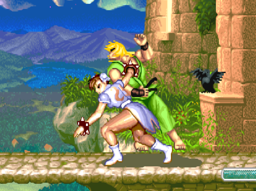 这也就导致了在《少年街霸》《超级街头霸王2》时期,春丽的投技全都是一样的,轻轻将对手推到在地上就完事了。