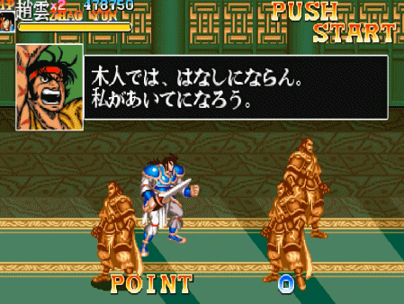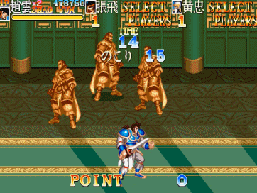 那么,要是两个人续币的话,会是什么效果呢?同样是重新开始,三人群殴的画面。《三国战纪》打败张辽后也能群体PK。