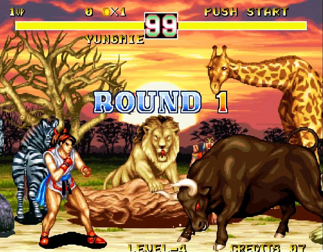 当年我们玩到的是改版,设计就是一局定胜负,每个人物只打了一次,或许正是这个原因导致无法见到公牛吧!游戏还是加强版的,很多人物可以无限释放波动,对手甚至连站起来的机会都没有。